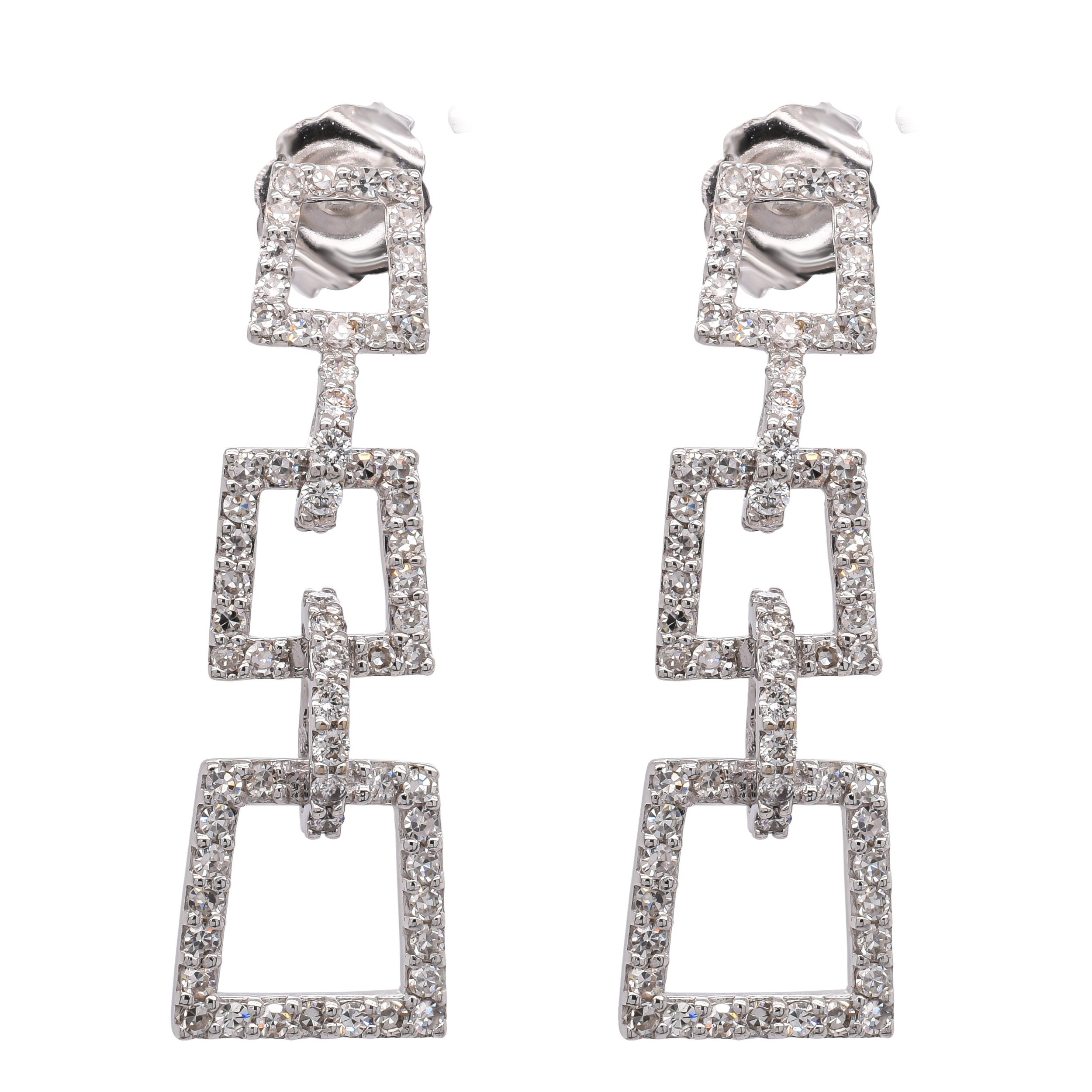 14K White Gold Triple Rectangular Diamond Dangle Stud Earrings LeeBrant Jewelry & Watch Co Sandy Springs, GA