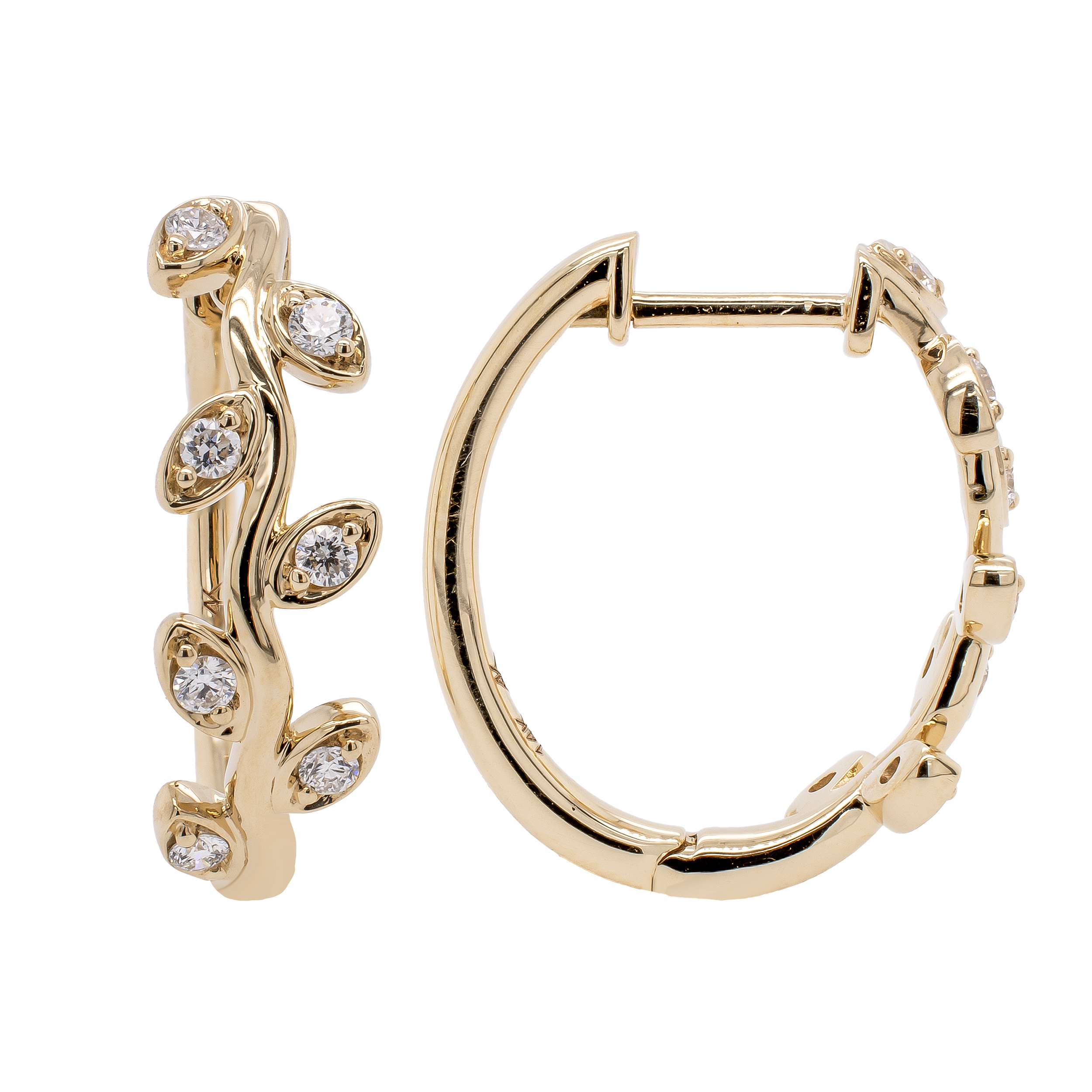 14K Yellow Gold Leaf Hoop Diamond Earrings LeeBrant Jewelry & Watch Co Sandy Springs, GA