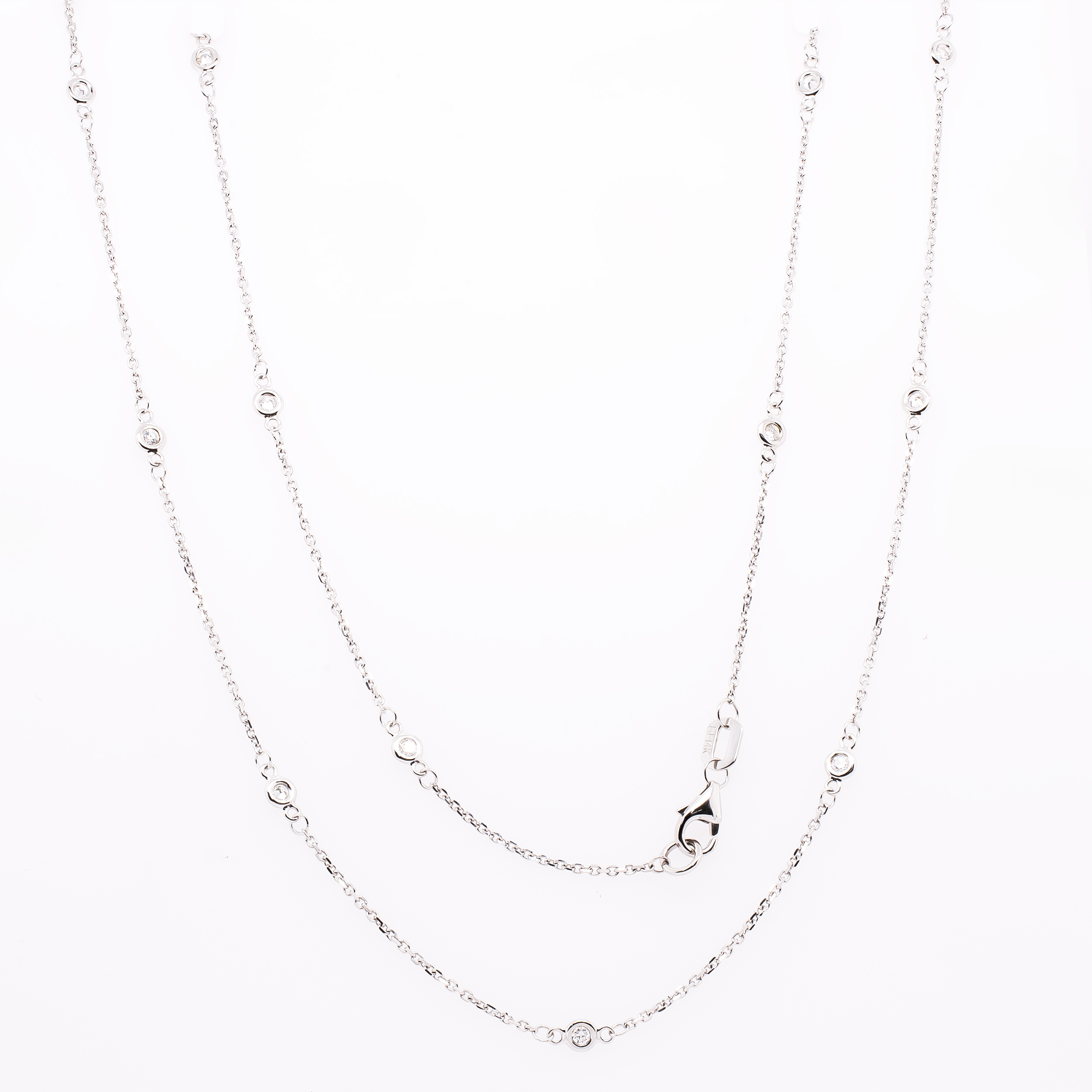 4. 14K White Gold Bezeled Diamond by the Yard 18" Necklace